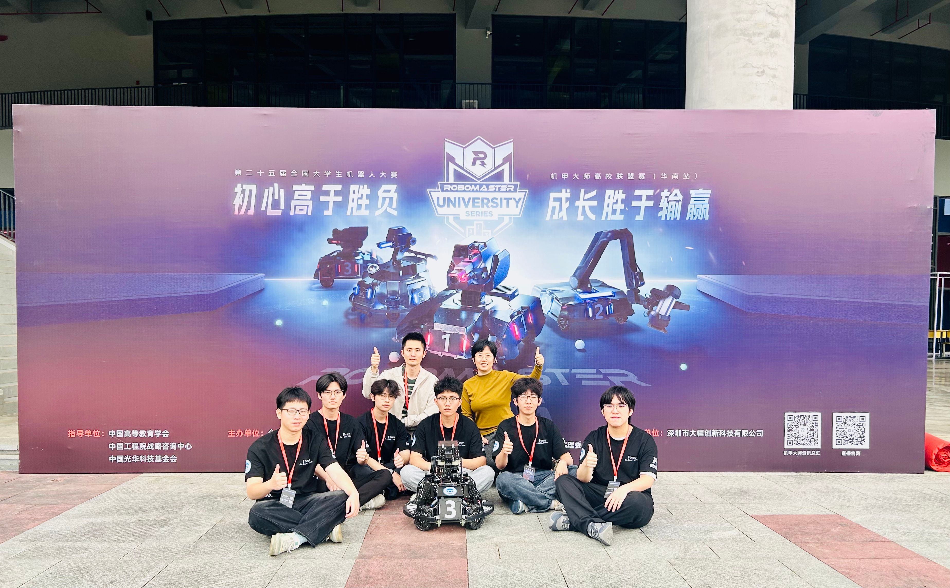RoboMaster机甲大师高校联盟赛是促进区域性高校机器人技术交流的重要赛事,2026 赛季设置 3V3 对抗赛、步兵对抗赛和工程挑战赛三大赛事,融合机械设计、电子控制、人工智能等多领域硬核技术,全面考验参赛团队的工程能力与实战协作能力。其中步兵对抗赛为1V1机器人对战,以射击对方装甲模块、比赛结束时剩余血量高者为胜。本次华南站赛事汇聚华南地区众多高校强队,Foray战队参赛队员为周昌明、李宇灏、刘志杭、倪林瀚、吴文磊、梁国匡,由朱丽莎、陈家泓、钱远治、王丹四位老师担任指导,战队一路披荆斩棘从小组赛突围,成为赛场中的亮眼新生力量。